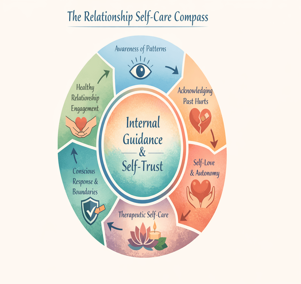 Unhealthy relationship patterns often continue because individuals become overly focused on maintaining connection while neglecting their own emotional needs. Developing a self-compassionate mindset helps shift this dynamic. By practicing self-care, setting healthy boundaries, and acknowledging your emotional needs, you begin strengthening your internal stability, an essential foundation for changing relational behavior.